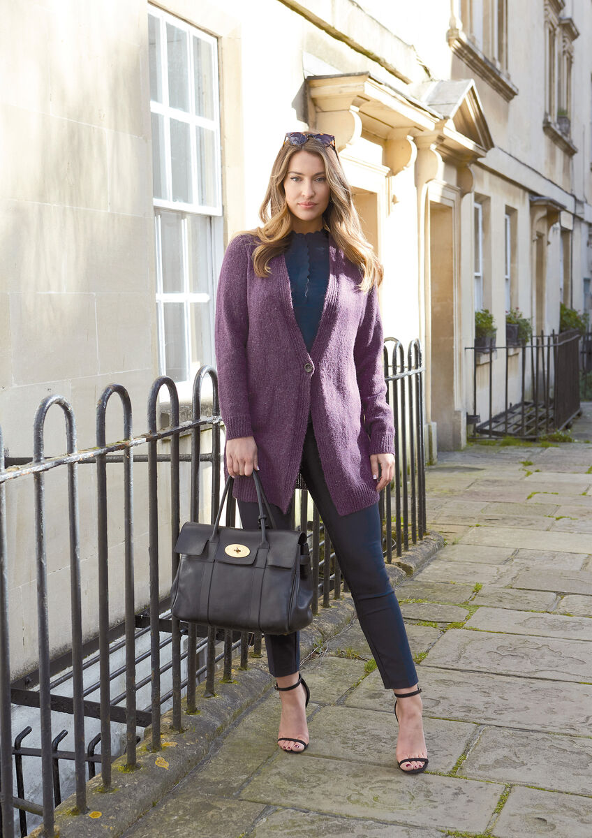 The flattering deep v-neck on this cardigan creates an elegant silhouette that suits everyone. Martin Storey's classic single button fastening is simple and striking. Felted Tweed makes this cozy and comfortable to wear.