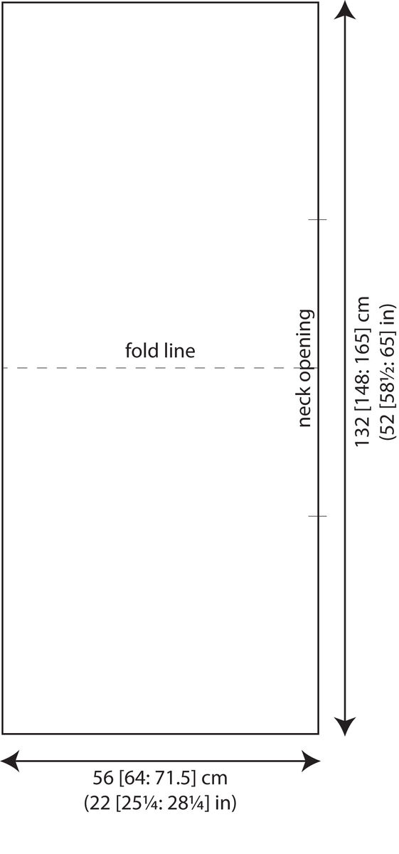 Der von Martin Storey entworfene, allmählich gestreifte Poncho wird auf Rundstricknadeln in Hin- und Rückreihen gestrickt, um die große Anzahl der benötigten Maschen unterzubringen. Die Ponchoform wird erreicht, indem das fertige Teil in der Hälfte gefaltet und nur ein Teil der seitlichen Ränder zusammengenäht wird, um einen Halsausschnitt zu schaffen. Ein einfaches Hebemaschenmuster sorgt für Struktur im gesamten Stück.