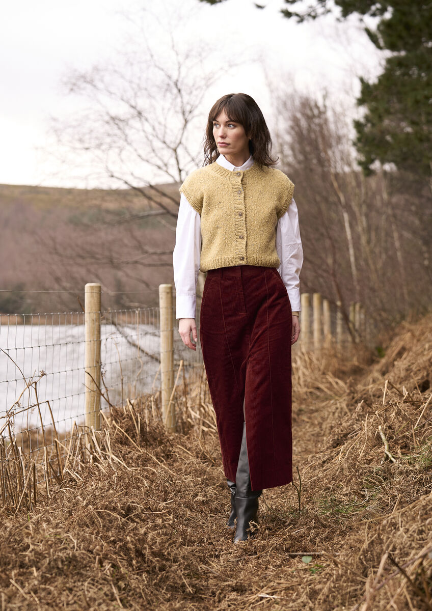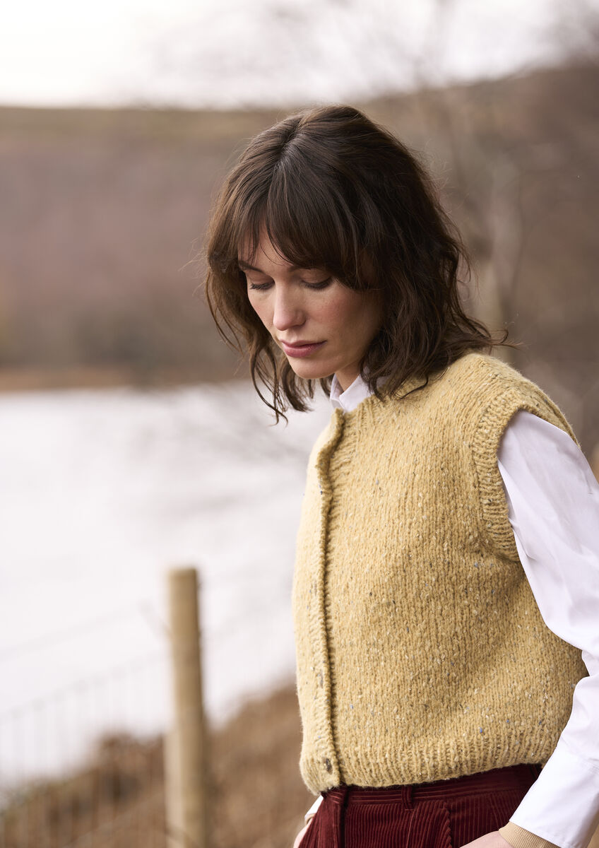 Die Strickweste von Georgia Farrell ist ein einfaches Modell, das Sie immer wieder gerne tragen werden. Sie eignet sich perfekt zum Überziehen, wenn es kühler wird, und kann einfarbig oder in auffälligen Blockstreifen gestrickt werden. So oder so ist sie eine großartige Ergänzung für jede Garderobe.