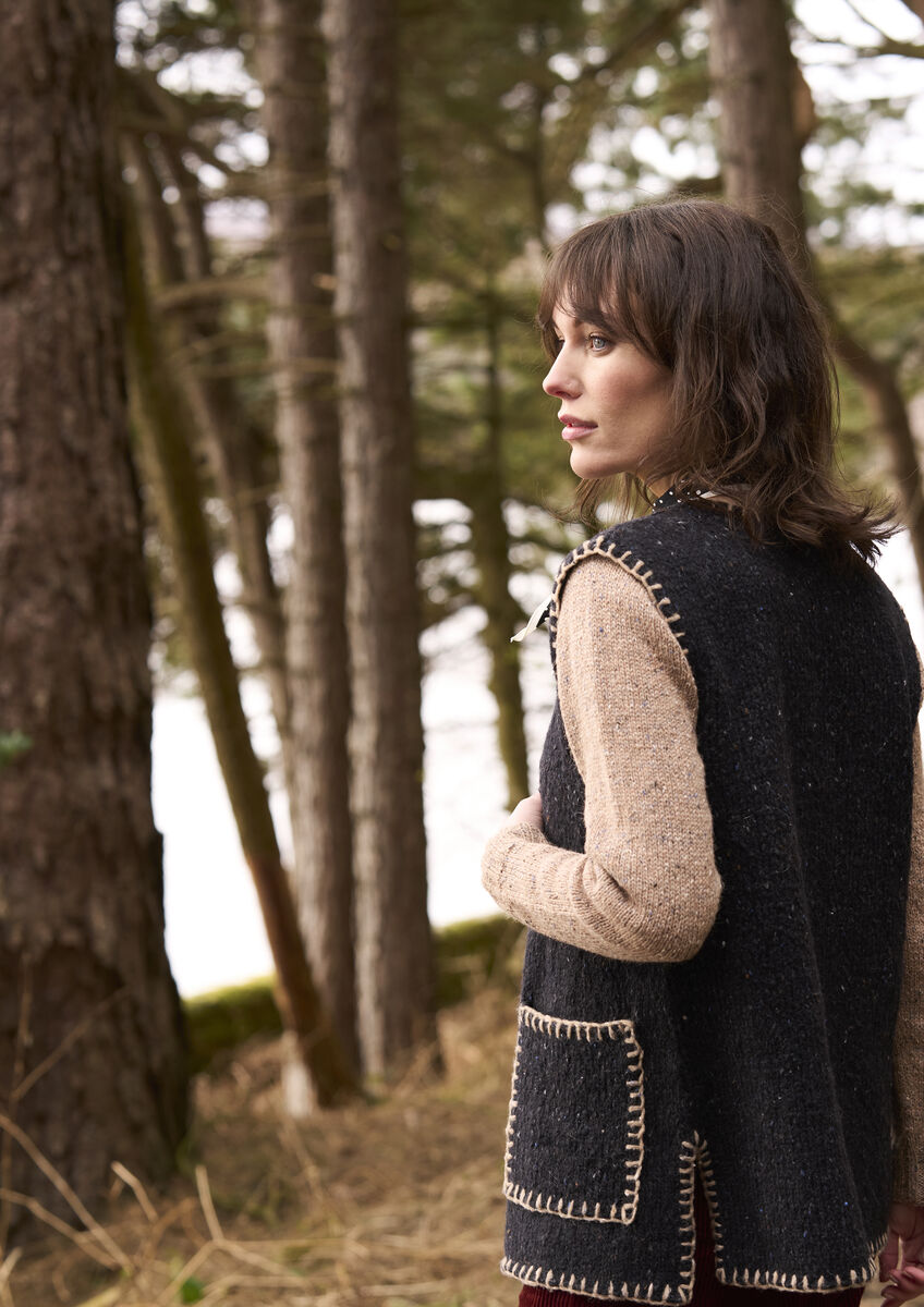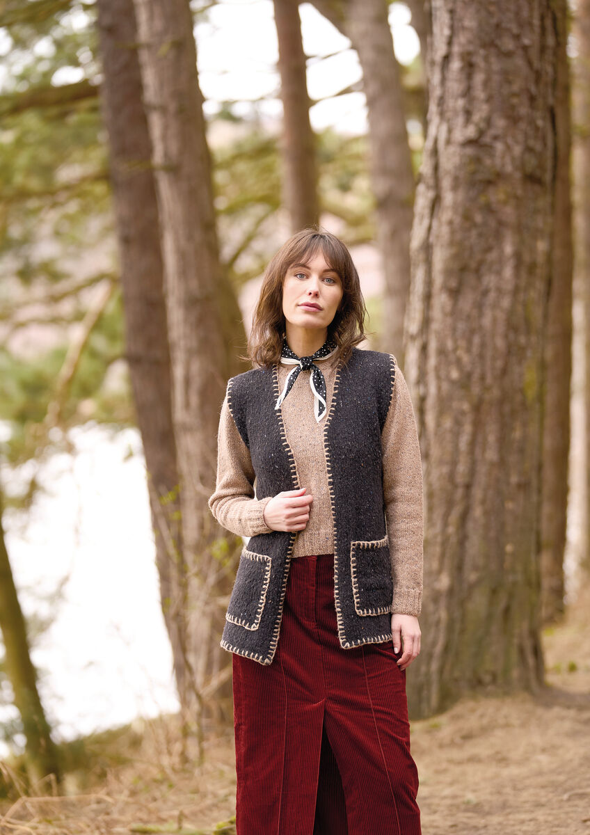 Diese stilvolle Weste von Lisa Richardson ist ein fantastisches Kleidungsstück für den Herbst. Das vielseitige Strickmodell aus Felted Tweed Soft ist an den Rändern und Taschen mit Stickereien verziert. Ein praktisches Kleidungsstück mit Taschen – was will man mehr!
