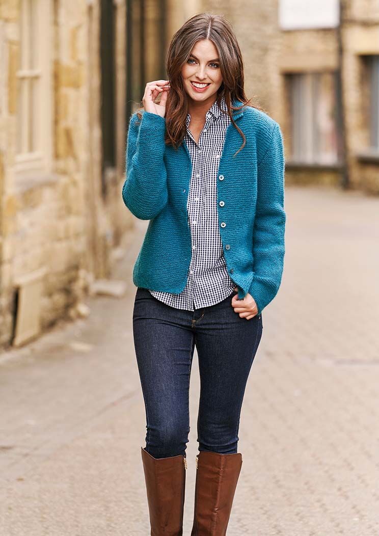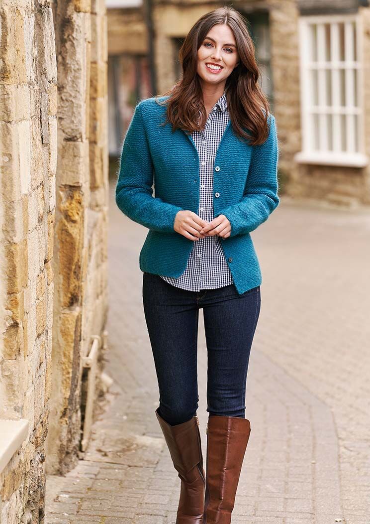 Knit this simple ladies cardigan, a design by Kim Hargreaves that has been re-styled and re-photographed for Rowan 40 Iconic Hand-Knit Designs. Knitted in garter stitch with buttons and a small collar, this pattern is suitable for the intermediate knitter.