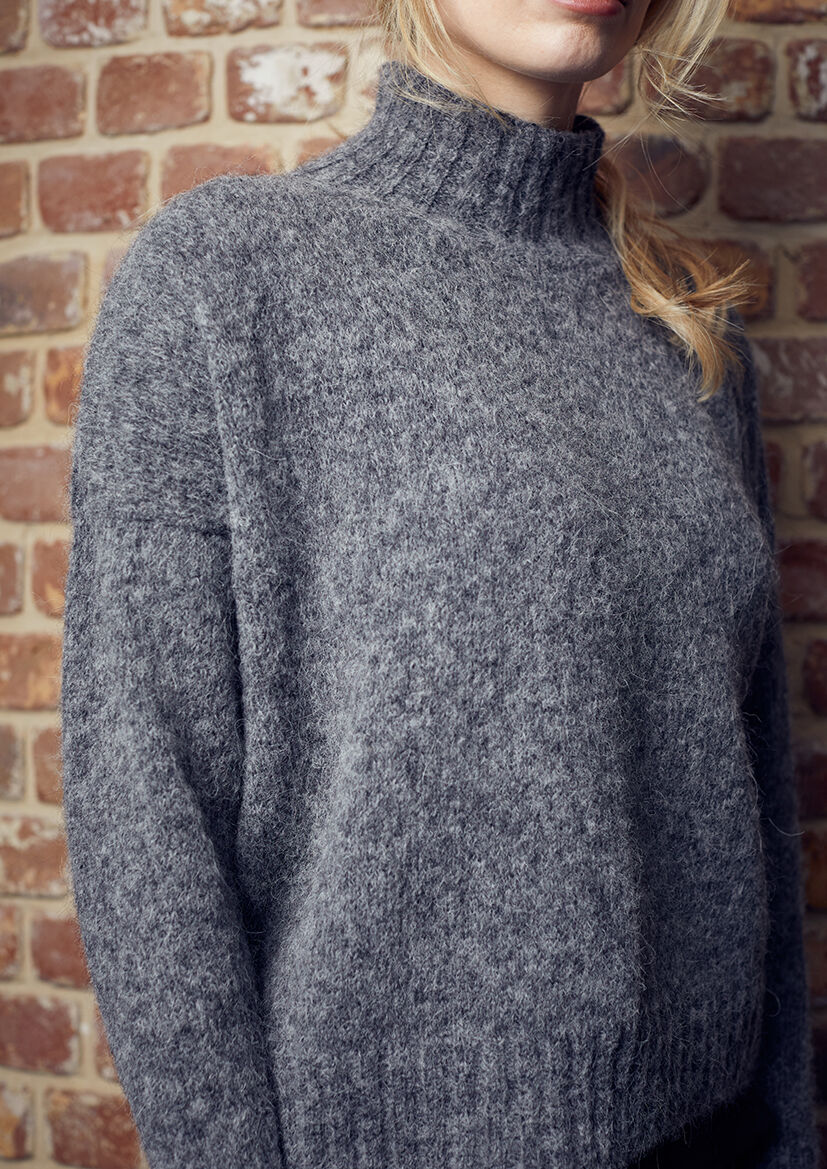 Knit this simple oversized sweater designed by Quail Studio. It features drop shoulders and a high neck. It is knitted in Alpaca Classic, a lovely blend of 57% alpaca and 43% cotton.